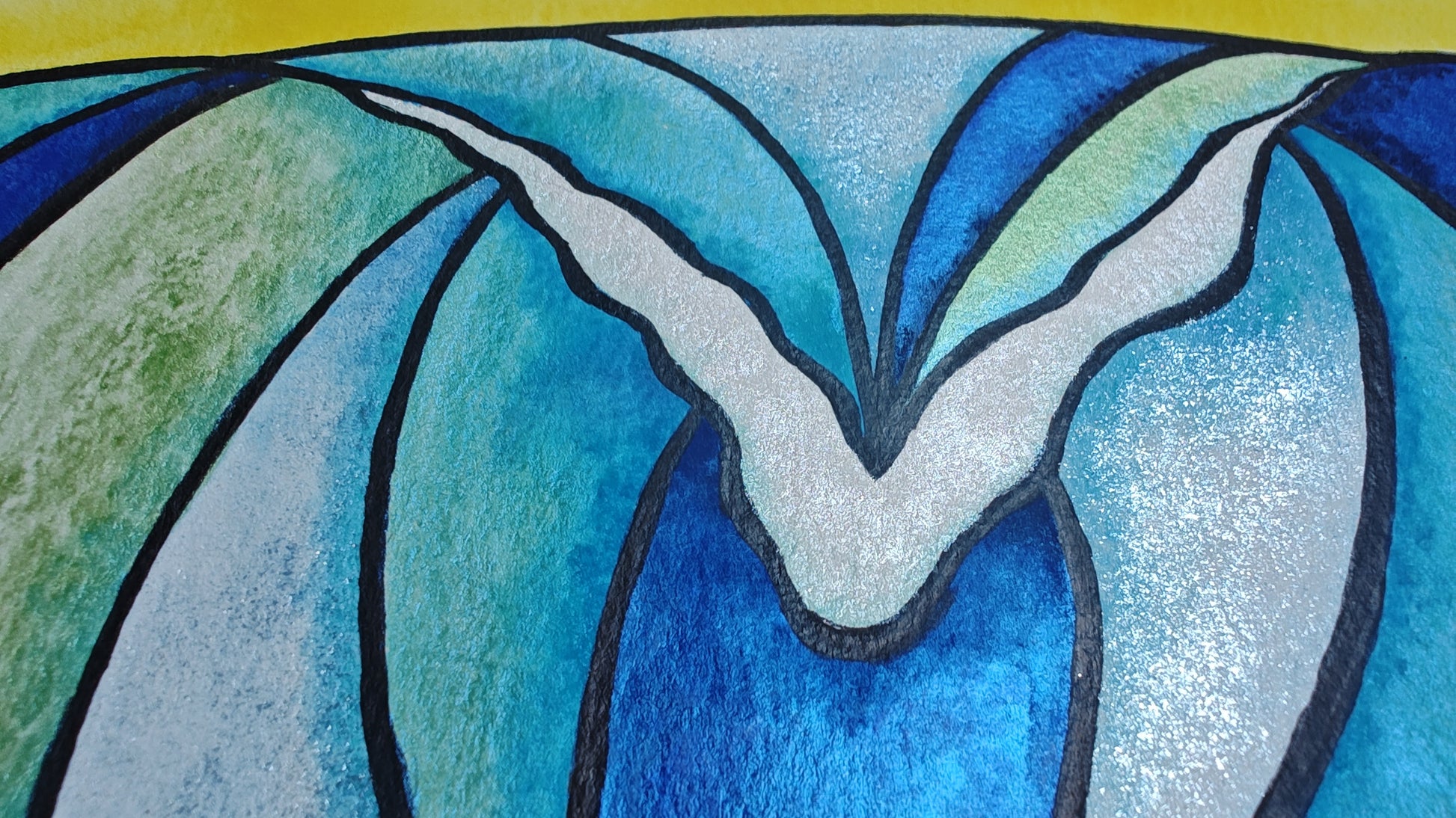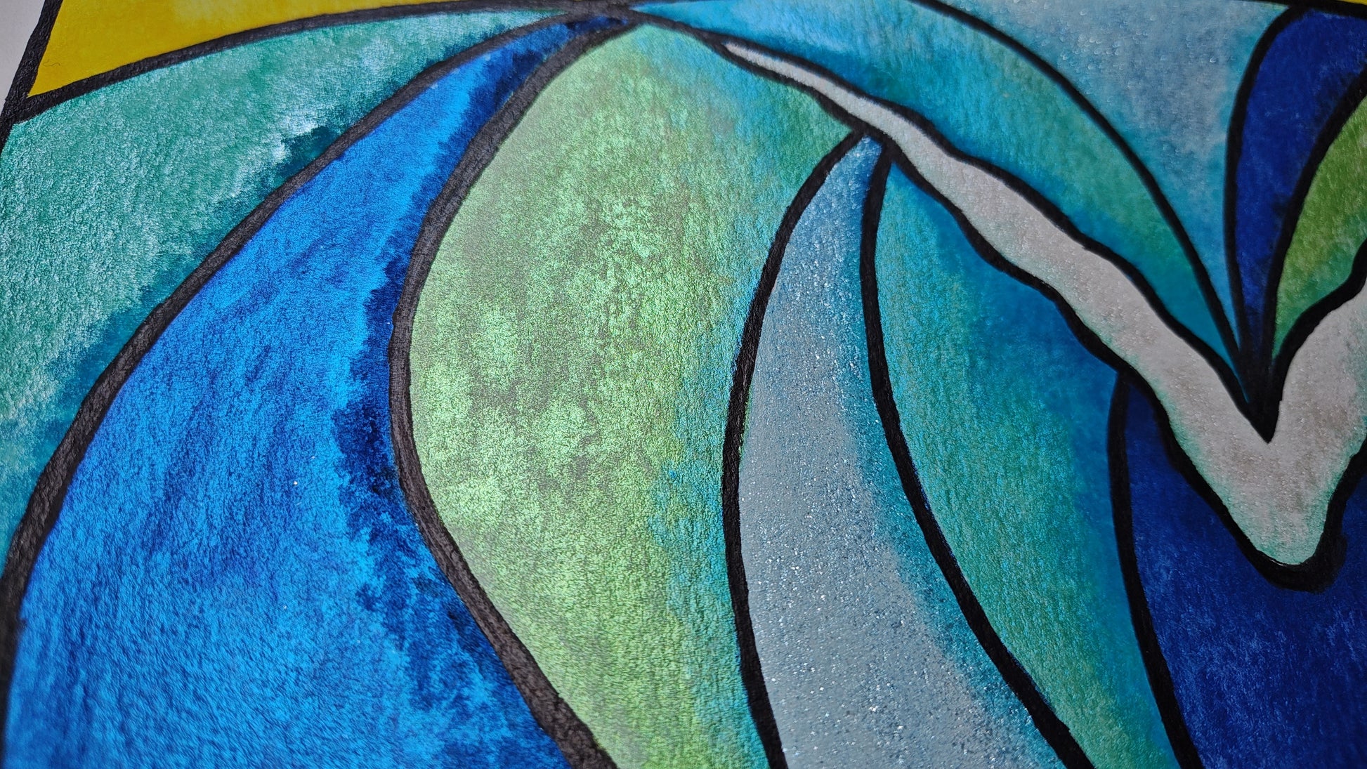 This is an original watercolor. It was created using artisan made shimmer watercolor paints and acrylic ink. It's painted on 140# cold press watercolor paper.